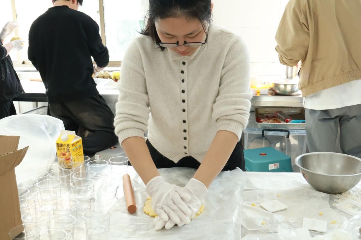 At the venue, participants skillfully infused creativity into their baked goods: chocolate gears embodied industrial aesthetics, buttercream “Sunlit Snow Mountains” captured poetic quality of nature, and the emblems of university and college adorned the pastries. Interactive sessions, including a Q&A quiz and traditional sugar painting, energized the crowd, strengthening campus spirit through engaging activities. In the dessert workshop, customized cookies and snowflake crisps turned campus culture into something tangible and delightful.