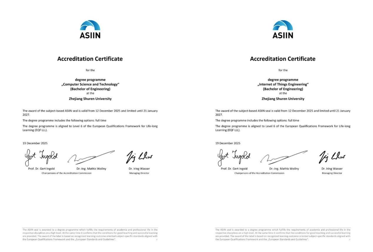 Recently, the German Accreditation Agency for Study Programs in Engineering, Informatics, Natural Sciences and Mathematics (ASIIN) officially announced that three programs at our university, Computer Science and Technology, Internet of Things Engineering, and Food Science and Engineering, have su...
